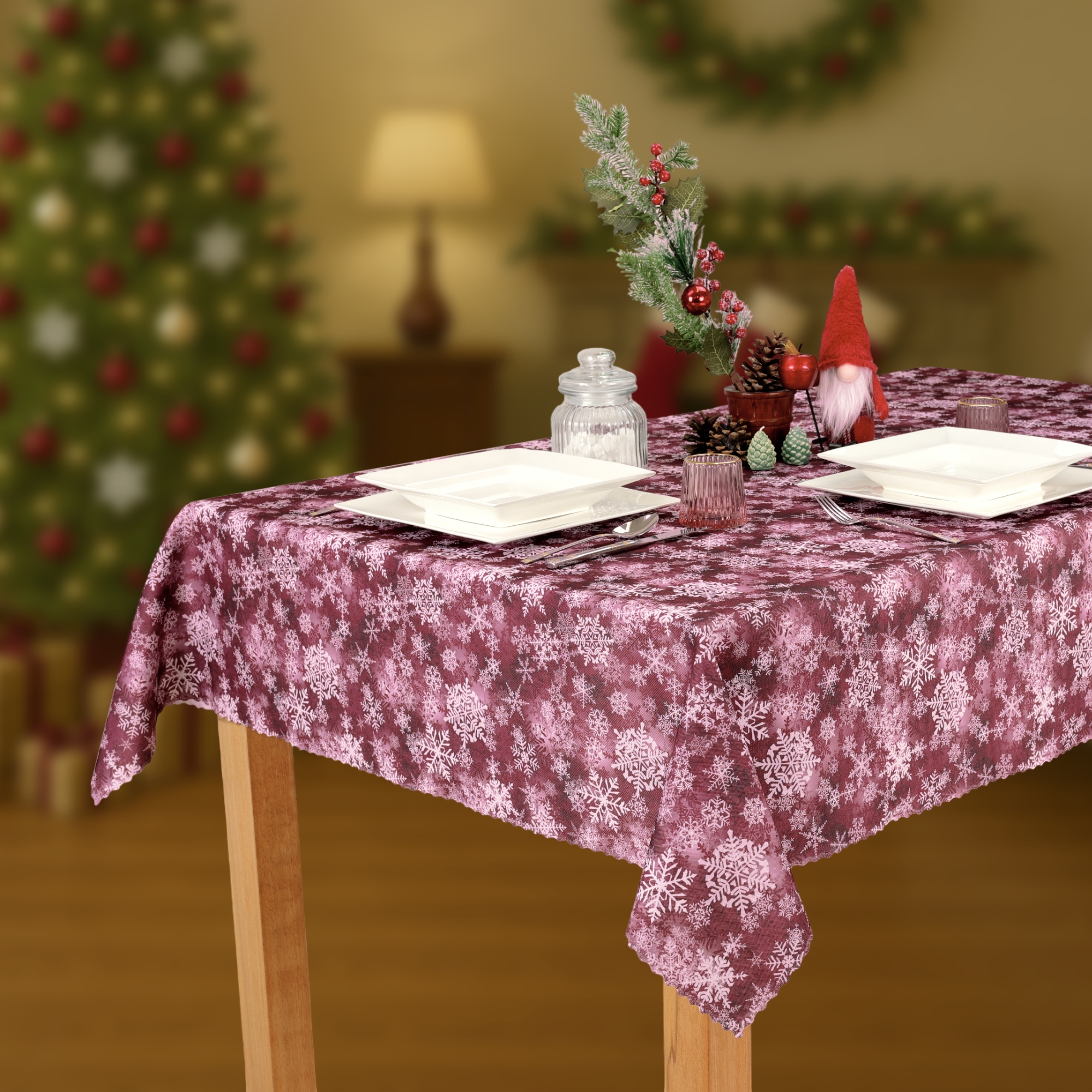 Obrus Bożonarodzeniowy Plamoodporny Bordowy w Śnieżynki - Simon 1z2617-101