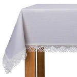 Obrus plamoodporny P130 biały z koronką białą - idealna dekoracja salonu