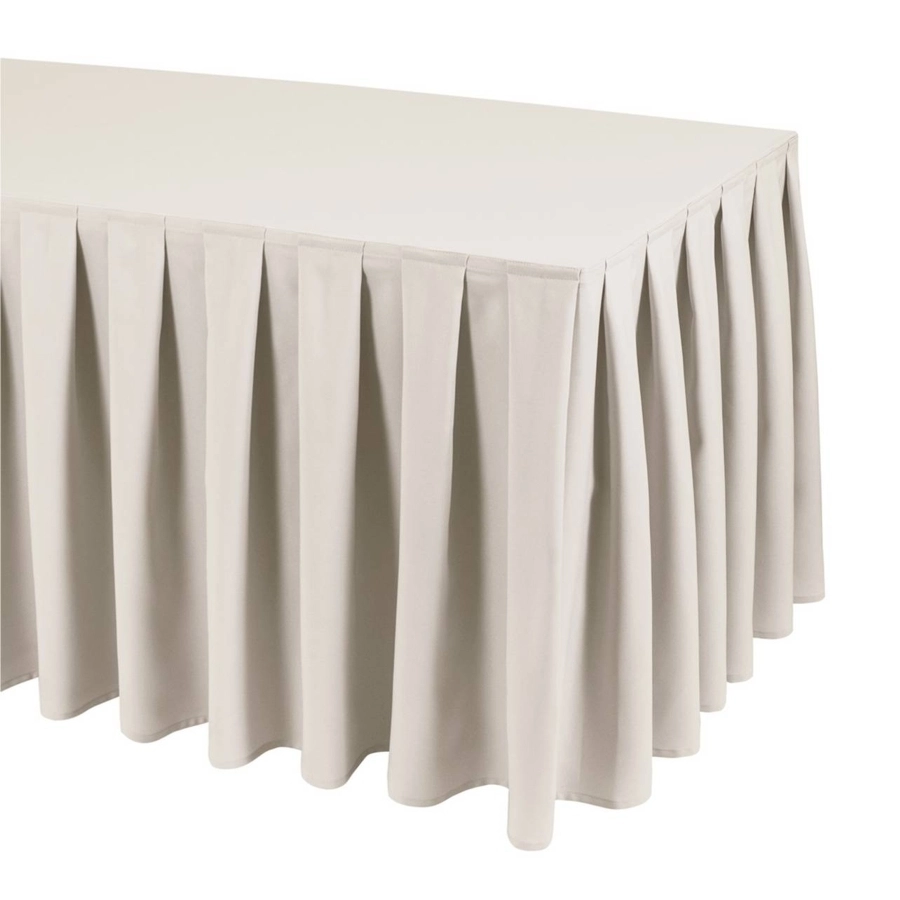 Falbana S2 to model najczęściej zamawiany i spotykany w lokalach. Charakteryzuje się naprzemiennie uszytymi fałdami i kontrafałdami, co daje wspaniały efekt. Skirting pięknie i elegancko prezentuje się na stole. Fałdy zaszyte są na stałe a mocowanie do stołu odbywa się za pomocą wszytej miękkiej taśmy rzepowej.
