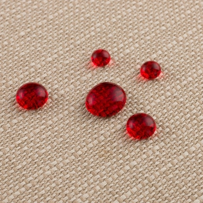 Tkanina P130 została pokryta również bardzo dobrej jakości apreturą plamoodporną, która chroni jej włókna przed wszelkiego rodzaju zabrudzeniami. Po rozlaniu cieczy na powierzchni tkaniny powstają efektowne kropelki. Apretura plamoodoporna również wydłuża żywotność tkaniny oraz pozwala dłużej zachować jej nowy wygląd.